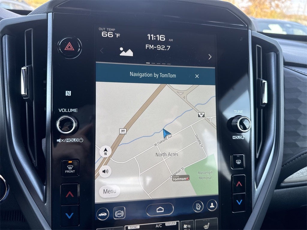 - Radio: Subaru 11.6" Multimedia Navigation System -inc: valet mode, integrated center information display, AM/FM stereo HD Radio, multi-touch gesture high resolution display screen, voice activated controls, voice activated navigation, Bluetooth® audio streaming and hands-free phone connectivity w/SMS text messaging connectivity (refer to subaru.com for cell phone compatibility), TomTom navigation software w/What3Words, iPod control capability, SiriusXM w/360L (4 months free trial/subscription required after), SiriusXM Travel Link (3 years free trial/subscription required after), SiriusXM Live Traffic (1 year free trial/subscription required after), smartphone integration for Android Auto and Apple CarPlay w/full screen view and wireless connection, USB and Over The Air (OTA) audio system update, TomTom navigation system update w/USB/Map Over The Air (MOTA) (3 years free map updates), steering wheel control switches for audio and Bluetooth®, harman/kardon speaker system w/11 speakers and 576 watt equivalent maximum output amplifier, 3.5mm auxiliary input jack and roof mounted audio and satellite antenna