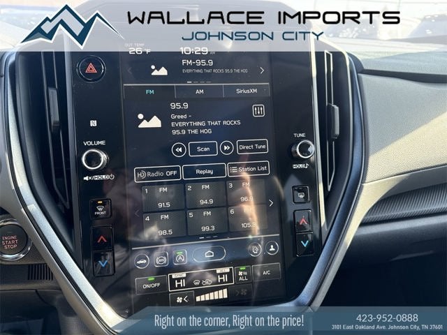 - Radio: Subaru 11.6" Multimedia Plus System -inc: AM/FM stereo, HD Radio, multi-touch gesture high resolution display screen, voice activated controls, Bluetooth® audio streaming and hands-free phone connectivity, Bluetooth® hands-free SMS text messaging connectivity, iPod control capability, smartphone integration: wired and wireless Android Auto w/full screen view and wireless Apple CarPlay w/full screen view, USB and Over The Air (OTA) audio system update, steering wheel audio system and Bluetooth® control switches, 6 speakers (2 dash panel tweeter, 2 front door and 2 rear door), illuminated 3.5mm auxiliary input jack, illuminated front USB A and C input/charge ports, connected services operation indicator, SOS emergency assistance: red SOS button and enhanced roadside assistance: blue i-button