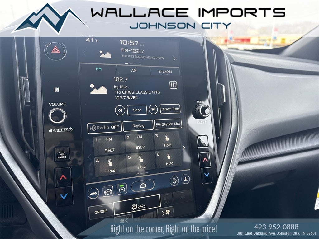 - Radio: Subaru 11.6" Multimedia Plus System -inc: AM/FM stereo, HD Radio, multi-touch gesture high resolution display screen, voice activated controls, Bluetooth® audio streaming and hands-free phone connectivity, Bluetooth® hands-free SMS text messaging connectivity, iPod control capability, smartphone integration: wired and wireless Android Auto w/full screen view and wireless Apple CarPlay w/full screen view, USB and Over The Air (OTA) audio system update, steering wheel audio system and Bluetooth® control switches, 6 speakers (2 dash panel tweeter, 2 front door and 2 rear door), illuminated 3.5mm auxiliary input jack, illuminated front USB A and C input/charge ports, connected services operation indicator, SOS emergency assistance: red SOS button and enhanced roadside assistance: blue i-button