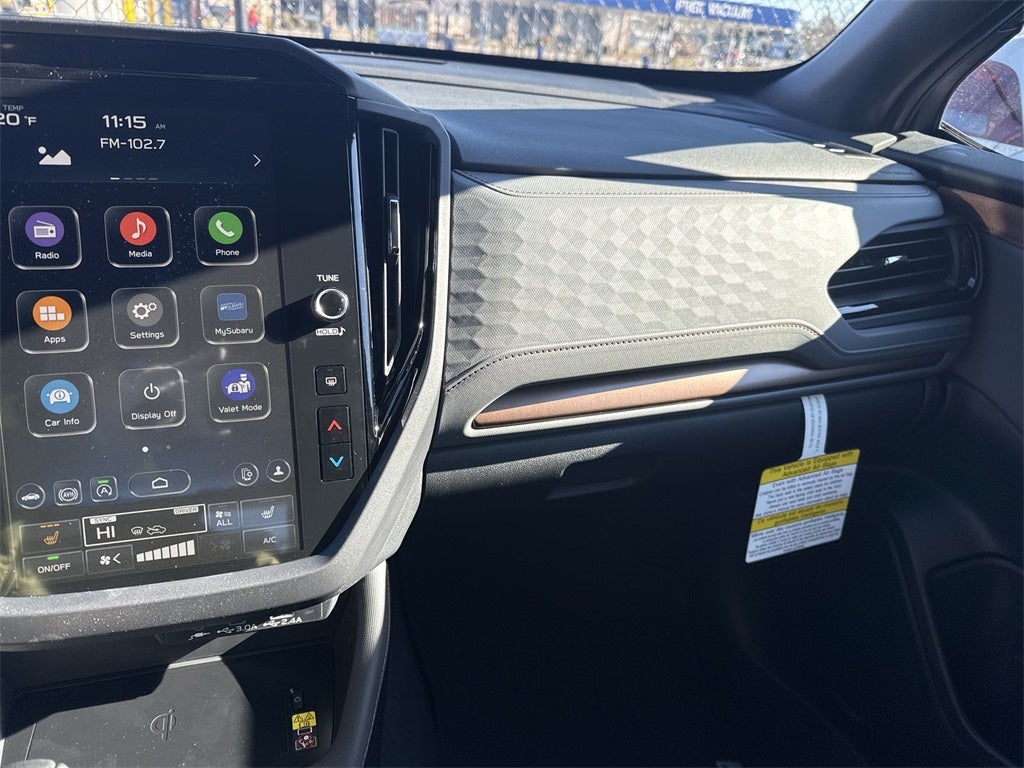 • Radio: Subaru 11.6" Multimedia Plus System -inc: valet mode, integrated center information display, AM/FM stereo HD Radio, multi-touch gesture high resolution display screen, voice activated controls, Bluetooth® audio streaming and hands-free phone connectivity w/SMS text messaging (refer to Subaru.com for cellphone compatibility), iPod control capability, smartphone integration: Android Auto and Apple CarPlay w/full screen view and wireless connection, SiriusXM satellite radio w/360L (free 4-month trial subscription included), USB and Over The Air (OTA) audio system update, steering wheel controls, 6 speakers, 3.5mm auxiliary input jack and roof mounted audio and satellite antenna