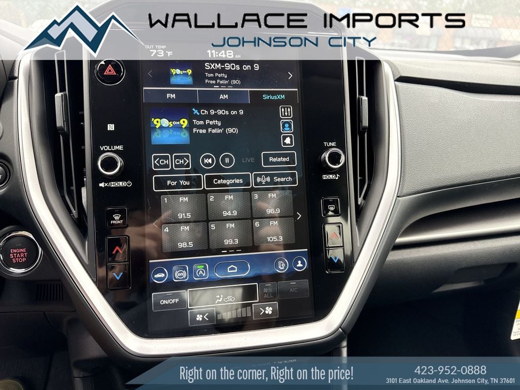 - Radio: Subaru 11.6" Multimedia Plus System -inc: valet mode, AM/FM stereo, HD Radio, multi-touch gesture high resolution display screen, voice activated controls, Bluetooth® audio streaming and hands-free phone connectivity, Bluetooth® hands-free SMS text messaging connectivity, iPod control capability, smartphone integration: wired and wireless Android Auto w/full screen view, wireless Apple CarPlay w/full screen view and wireless connection, USB and Over The Air (OTA) audio system update, audio system and Bluetooth® steering wheel control switches, 6 speakers (2 dash panel tweeter, 2 front door, 2 rear door), illuminated 3.5mm auxiliary input jack, illuminated USB A and C input charge ports, roof mounted satellite and connected services, roof mounted black antenna, connected services operation indicator, SOS emergency assistance (red button) and ehanced roadside assistance (blue i-button)