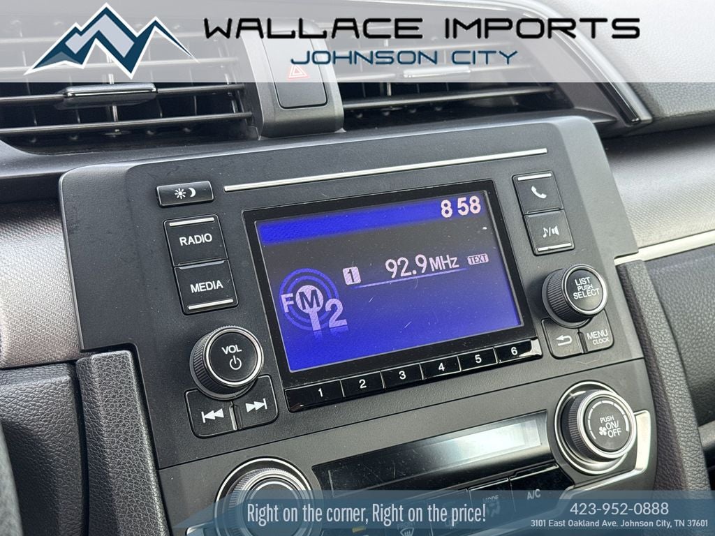 Wallace Imports of Johnson City is very proud to offer this good-looking 2017 Honda Civic in Black This vehicle has passed our comprehensive inspection and comes with the following features; Recent Arrival! Odometer is 29819 miles below market average! 31/40 City/Highway MPG