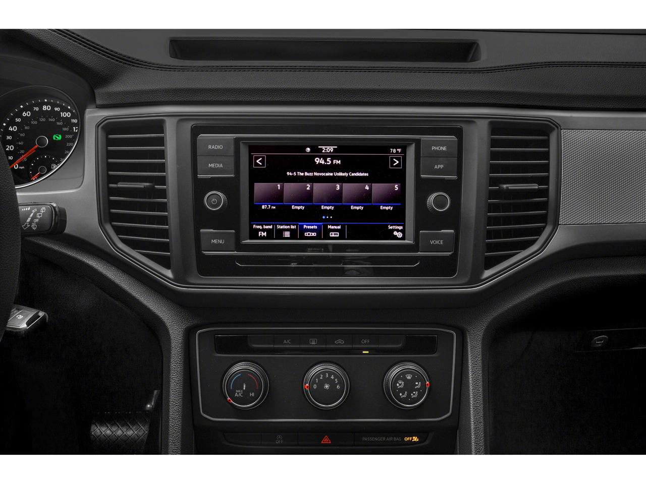 - Radio: MIB3 Composition Media w/8" Touchscreen -inc: AM/FM/HD Radio, WMA/MP3/FLAC player w/USB-C, voice control, capability for in-vehicle 4G LTE enabled Wi-Fi (cellular data plan required; includes limited trial), capability for VW Car-Net services (capabilities for certain services vary; requires enrollment or subscription), 6-speaker sound system, Bluetooth® connectivity (for compatible devices), SiriusXM w/360L (w/3-month all access trial; 360L services require acceptance of Car-Net terms), App-Connect smartphone integration (w/Apple CarPlay, Android Auto and MirrorLink) via USB and wireless App-Connect smartphone integration (for compatible devices) w/multi-phone pairing capability